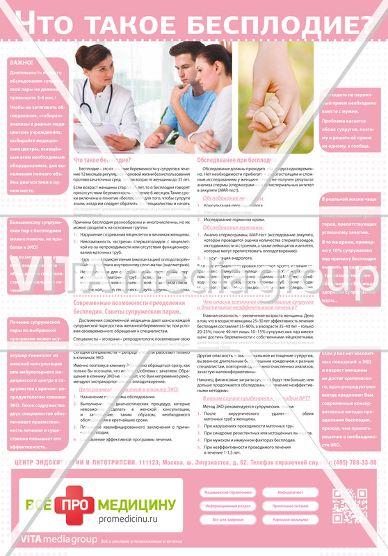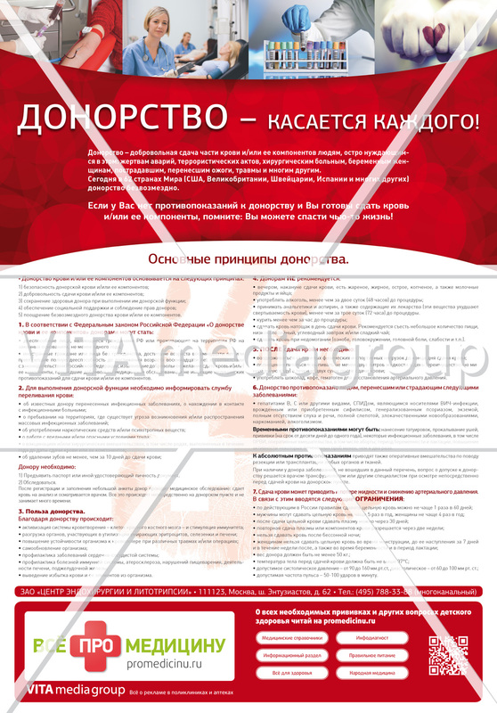 Компания VITA media Group совместно с порталом PROMEDICINU.RU проводят информационно-просветительскую работу в лечебных учреждениях России (более 2000 лечебно-профилактических учреждений Российской Федерации).