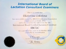С удовольствием сообщаем, что специалист GMS Clinic по грудному вскармливанию Екатерина Локшина получила международный сертификат Консультанта IBCLC (International Board Certified Lactation Consultant).
