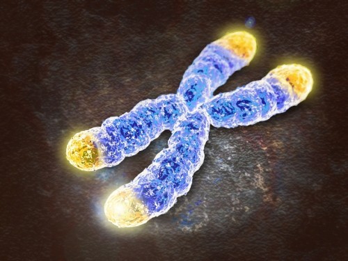 Теломеры (подсвечены желтым светом) на концах хромосомы.