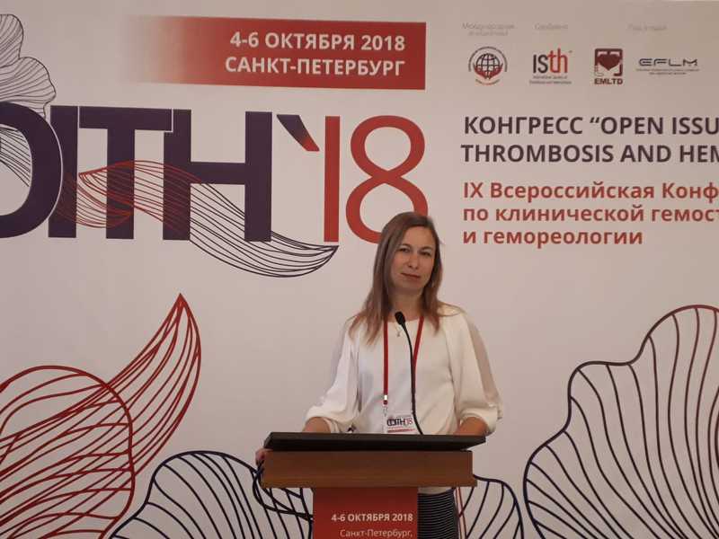 4-6 октября 2018 г. в Санкт-Петербурге состоялся объединенный международный конгресс «Congress on Open Issues in Thrombosis and Hemostasis» совместно с 9-ой Всероссийской конференцией по клинической гемостазиологии и гемореологии. В рамках мероприятия выступила Л.О. Бузян, врач терапевт-гемостазиолог сети центров репродукции и генетики Нова Клиник, и представила результаты научного исследования, проведенного на базе Южно-Уральского государственного медицинского университета МЗ РФ.